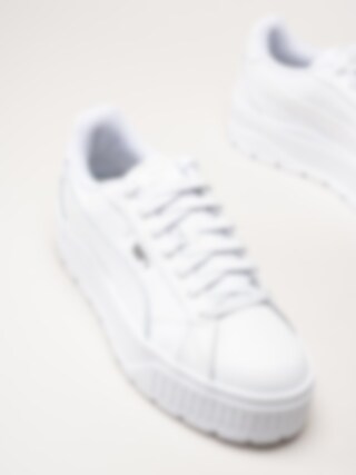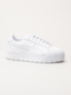 Vita platåsneakers i skinn Karmen II L från Puma. Skorna är tillverkade i skinn som ger ett stilrent och sportigt uttryck. Den markerade platåsulan ger extra höjd och lyfter silhuetten, vilket ger en trendig och modern look.