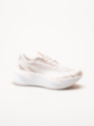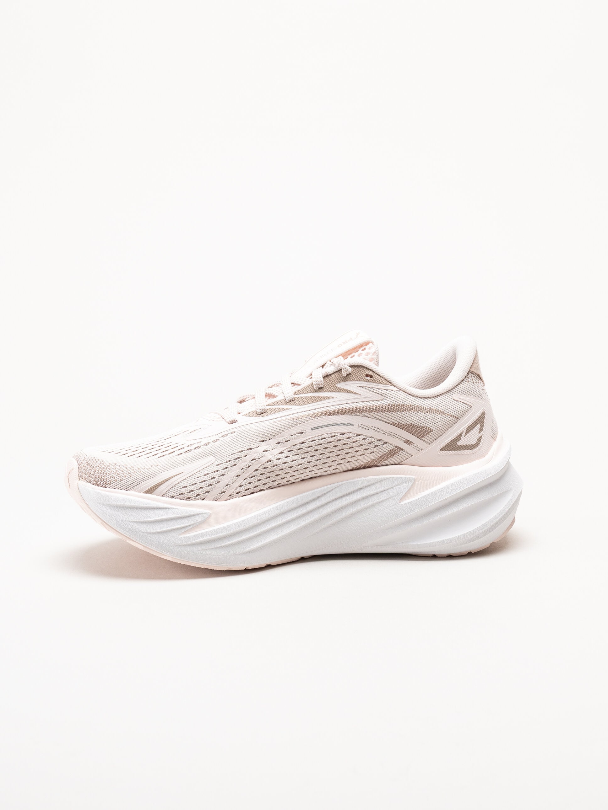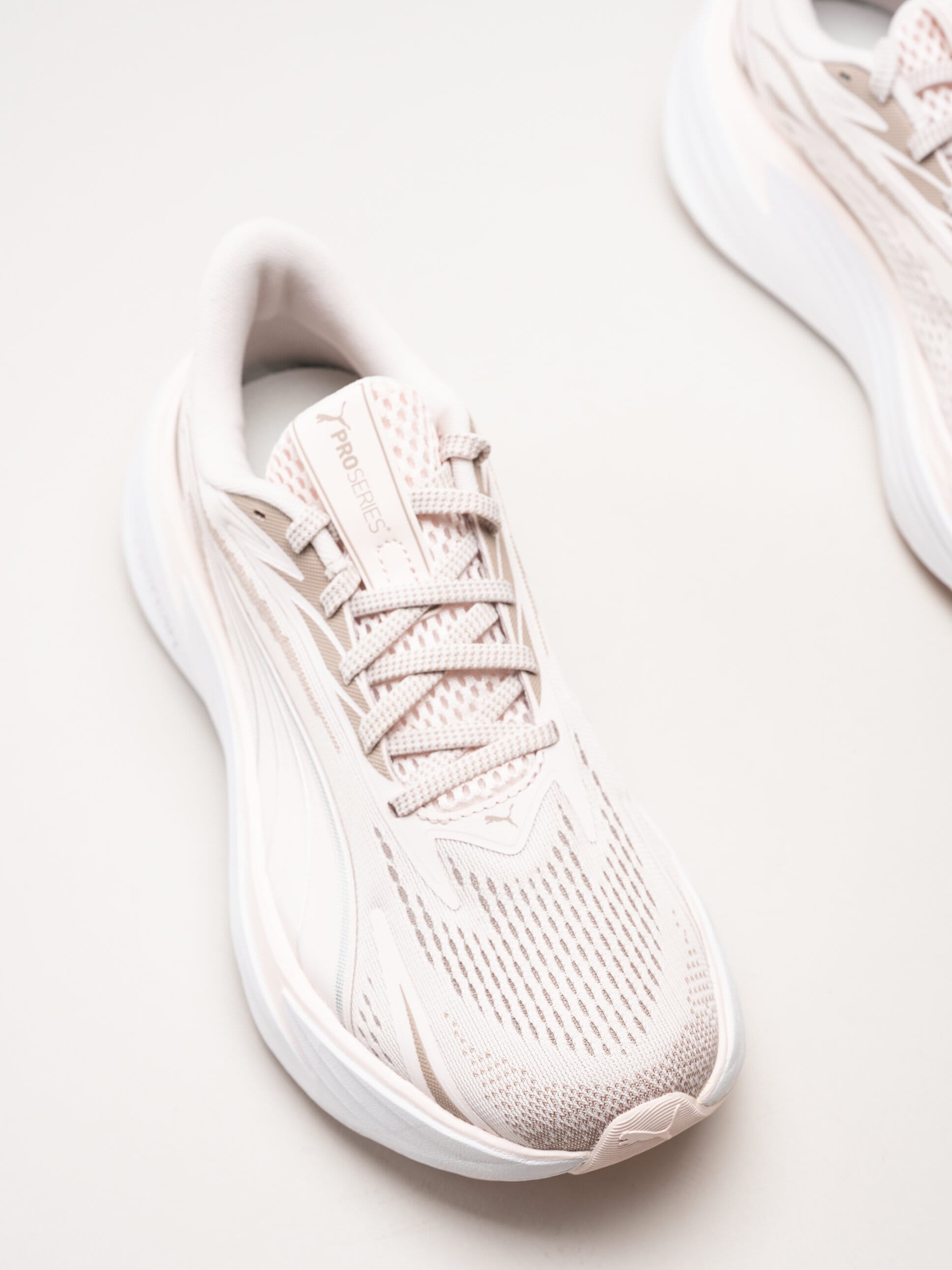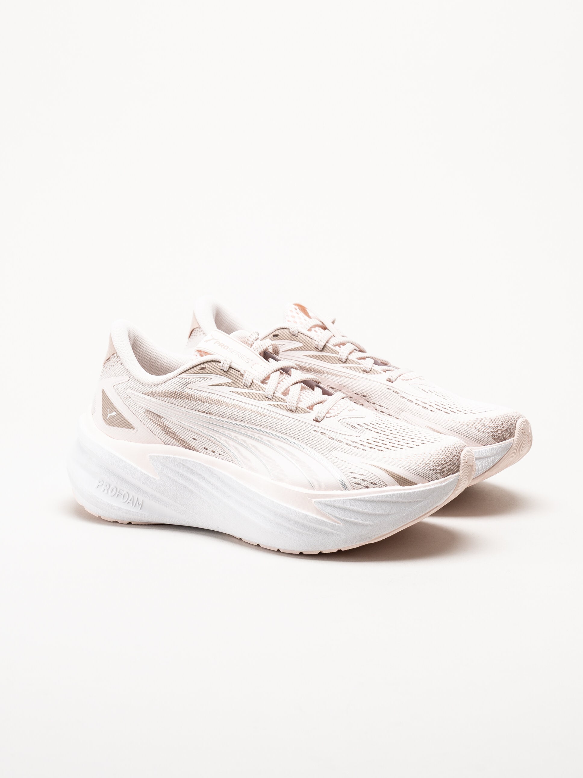 Rosa sneakers i textil Maxima Pro från Puma i färgen Jasmine Flower Rose Latte. Skorna är tillverkade i en lätt och ventilerande kombination av textil och syntet som ger ett sportigt och modernt uttryck, perfekt för både träning och aktiv vardag.