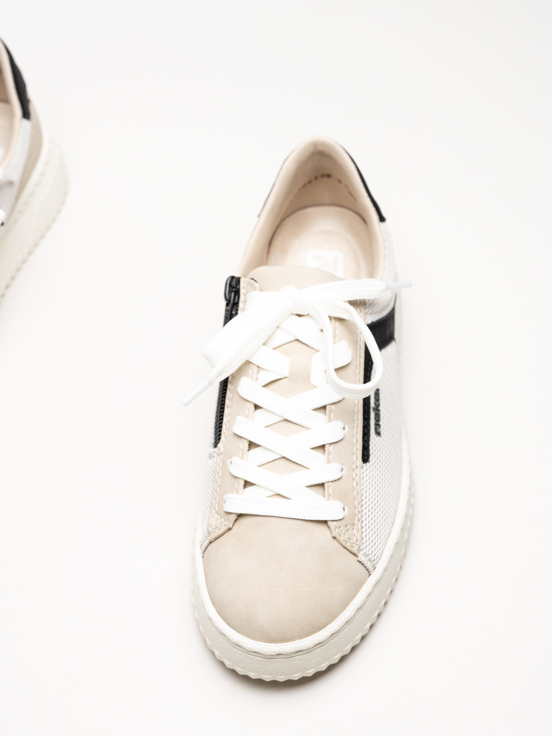 Beige sneakers i mesh från Rieker i färgen Ginger. Skorna är tillverkade i en lätt och ventilerande kombination av mesh och syntet som ger ett sportigt och modernt uttryck.