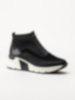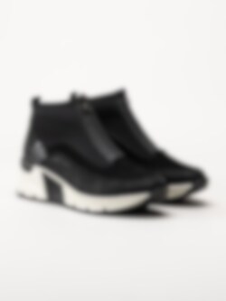 Fodrade med textil och utrustade med en löstagbar innersula i filt som ger skön komfort hela dagen. Den lätta syntetsyltan har en kilklack på cirka 5,5 cm och en platåhöjd på cirka 2,2 cm, vilket ger både höjd och stabilitet. Modellen har G-läst och Riekers Antistress-teknologi för extra flexibilitet och dämpning. Ett sportigt och bekvämt val som passar perfekt till vardags och fritid.