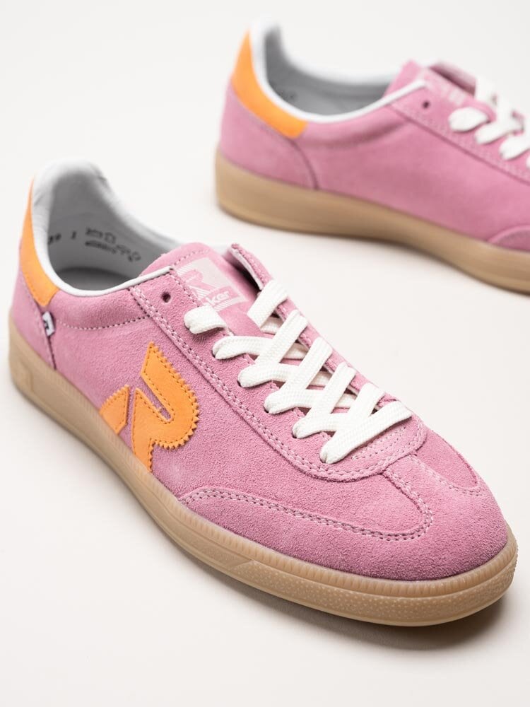 Rosa retro sneakers i mocka Pink från Rieker. Retro sneakers i mocka kombinerar stil och komfort på bästa sätt. Den 7-håls snörningen ger en perfekt passform, och foder i syntet och textil håller dina fötter bekväma hela dagen. Innersulan, utrustad med Riekers SWING2GO-teknologi, ger optimal komfort och kan enkelt tas ut för extra flexibilitet. Den klassiska yttersulan i gummi ger både hållbarhet och bra grepp. Perfekta sneakers för fina dagar i vardagen!