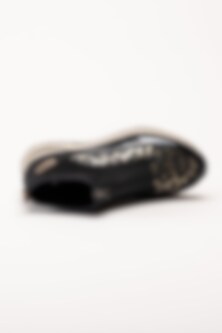 Skorna är fodrade med textil och har en löstagbar innersula i filt för extra komfort. Den lätta syntetsulan är utformad med en kilklack på ca 5,5 cm och en platå på ca 2 cm, vilket ger både höjd och stabilitet. Modellen är utrustad med Riekers Antistress-teknologi, som ger flexibilitet, stötdämpning och en följsam känsla. Ett par sneakerboots som kombinerar sportig funktion med stilfulla detaljer.