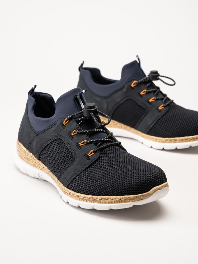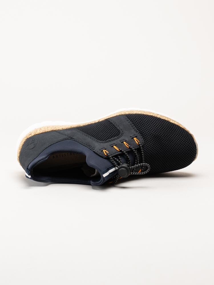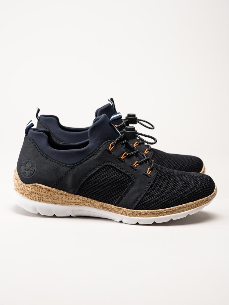 Mörkblå slip-on sneakers från Rieker i färgen Pazifik. Skorna är tillverkade i en lätt och ventilerande kombination av textil och syntet med perforerat mönster som ger god luftcirkulation och en behaglig känsla under hela dagen. Den sportiga slip-on-designen gör dem enkla att ta på och av, samtidigt som de ger en avslappnad och modern look.