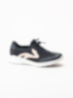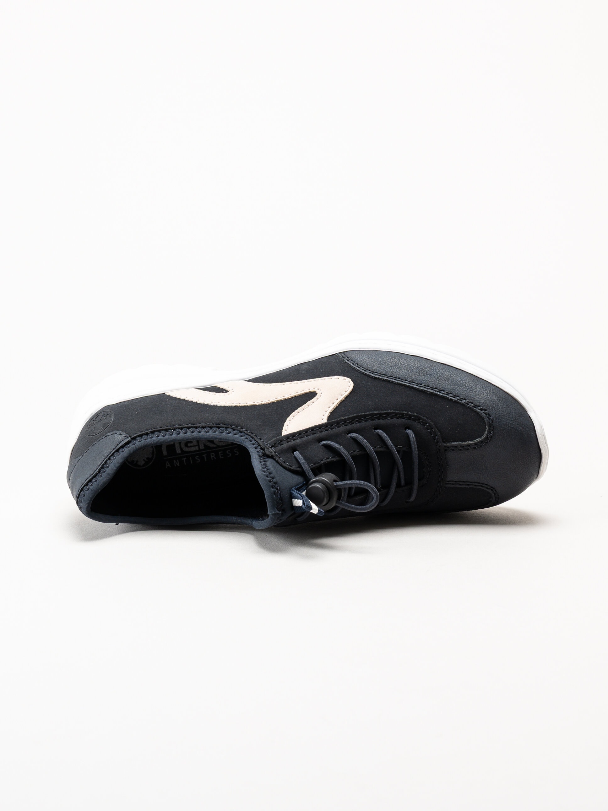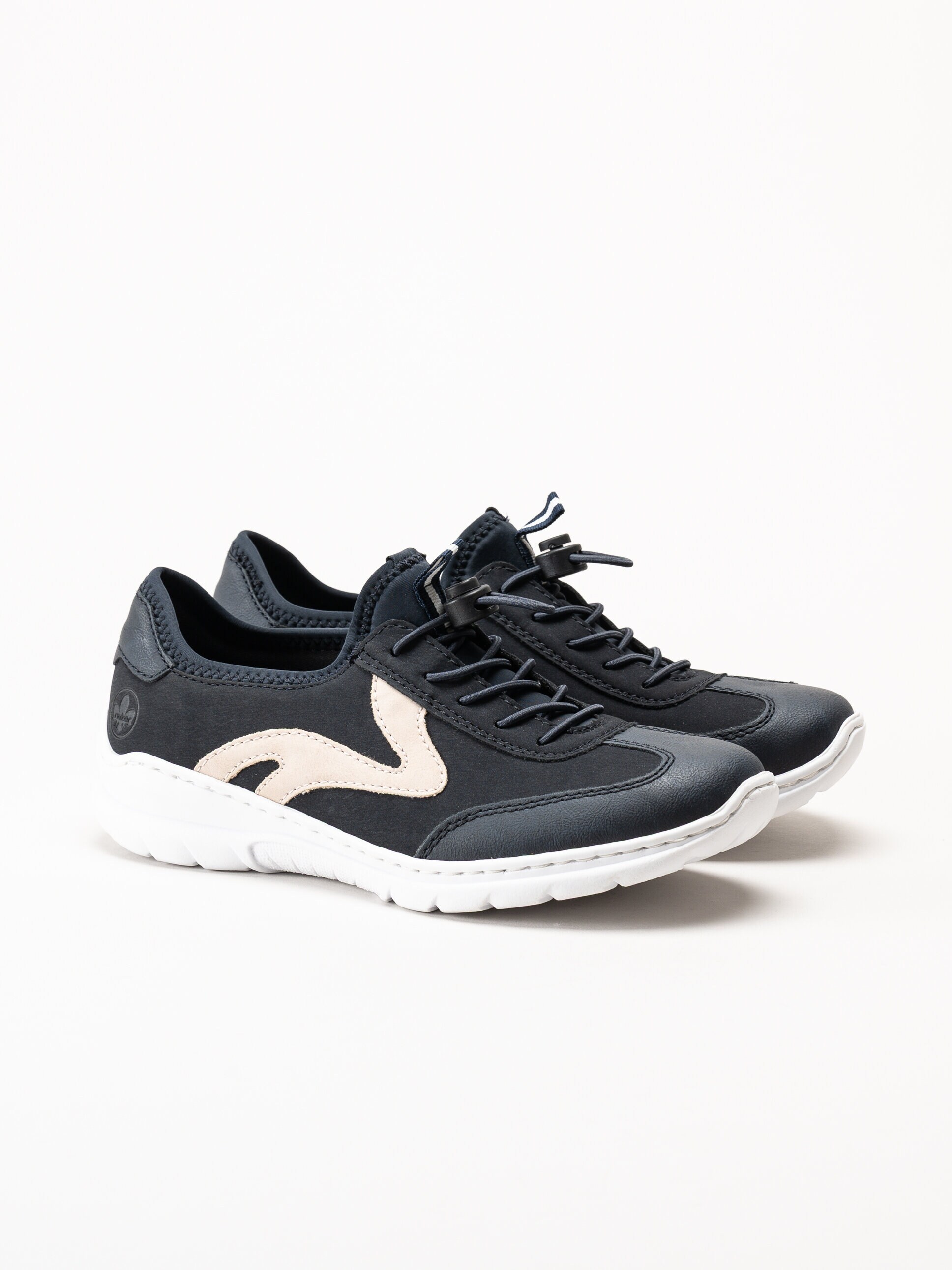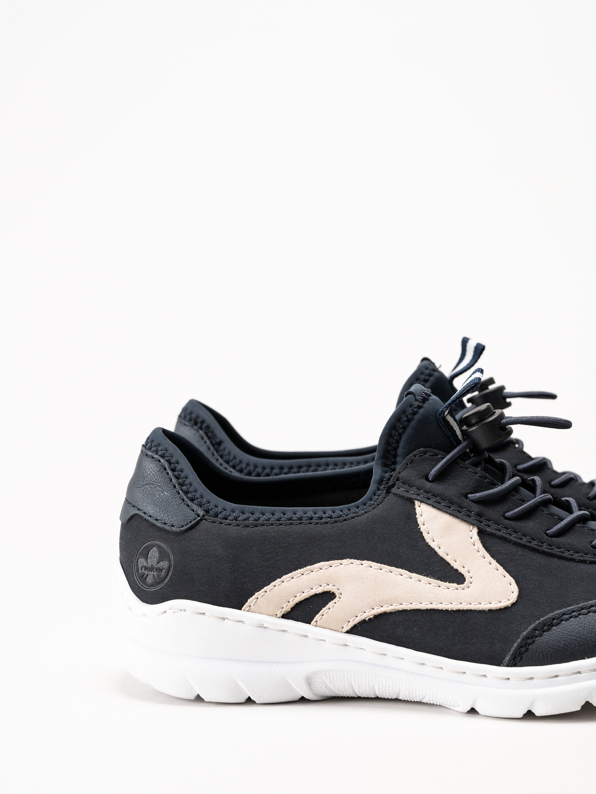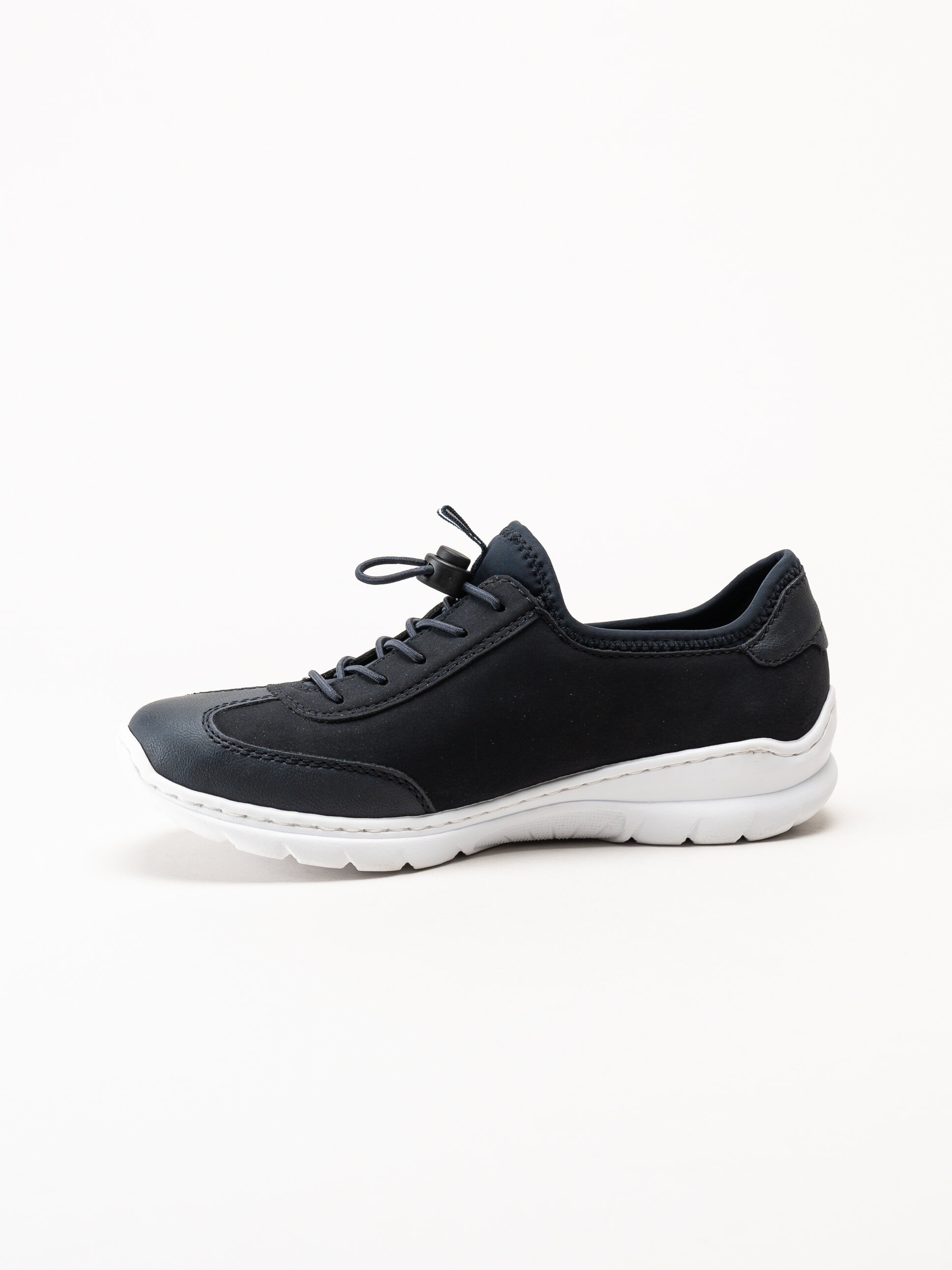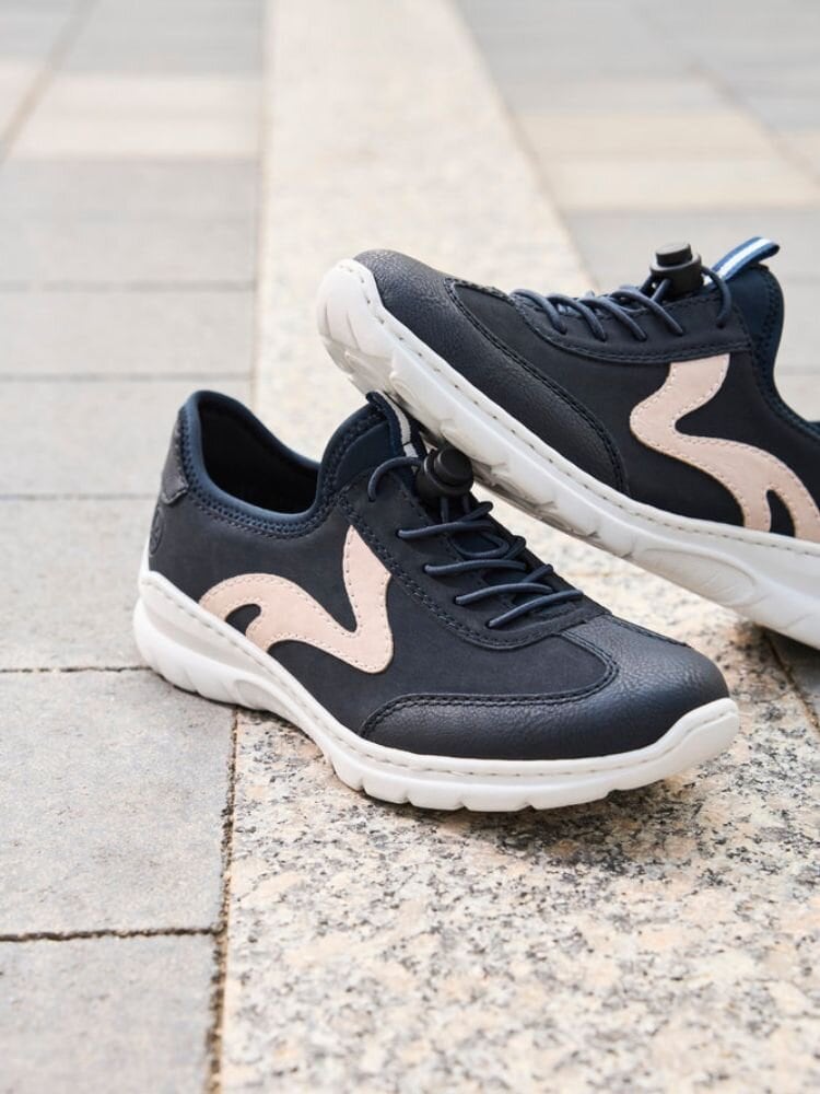 Mörkblå slip-on sneakers från Rieker i färgen Pazifik. Skorna är tillverkade i en kombination av syntet och textil som ger ett lätt, sportigt och modernt uttryck. Modellen har slip-on-design med dekorativ snörning som ger en justerbar känsla och bidrar till en stabil passform. Invändigt är skorna fodrade med textil för en mjuk och behaglig känsla mot foten, och innersulan i syntet ger lätt dämpning och komfort under hela dagen.