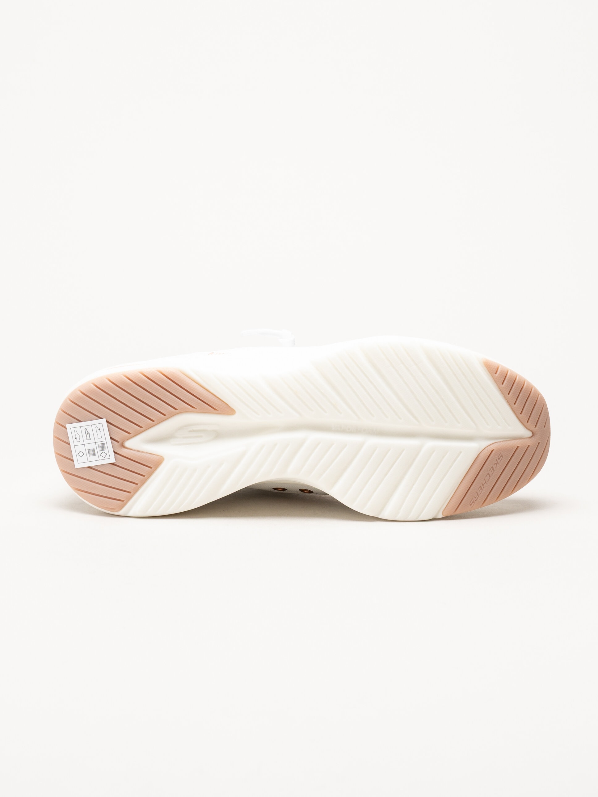 Vita slip-ins sneakers Contour Foam Golden Hour från Skechers i färgen White Rose Gold. Skorna är tillverkade i lätt och ventilerande textil med detaljer i syntetläder och fasta elastiska snören som ger en flexibel och följsam passform. Den praktiska slip-ins-designen gör dem enkla att ta på och av utan att använda händerna, och modellen är tvättbar i 30 grader.