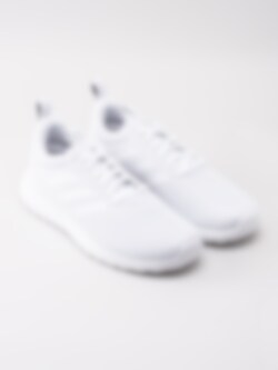 Sportskor Lite Racer CLN från Adidas tillverkad i vit meshtyg. Vita sömlösa 3 stripes i syntet på in- och utsidan som detalj. Broderad logga på plös. Utrustad med Ortholite innersula och Cloudfoam yttersula för ökad komfort. Vit snörning i polyester på 6 hål med vita öljetter som öppning. Hälla på bakskaft och plös som hjälpmedel vid påtagning. Vitt foder och grå innersula i textil med vit sömlös logga. Vit yttersula i syntet med rutigt mönster och logga.