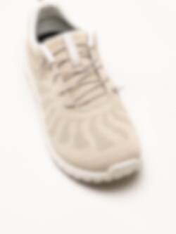 Beige sportskor i mesh Eli RB9X från Icebug i färgen Light Taupe. Skorna är tillverkade i lätt och ventilerande mesh som ger en smidig och följsam känsla under aktivitet. Den elastiska snörningen gör dem enkla att ta på och av samtidigt som passformen sitter säkert. Modellen är Bluesign®-certifierad, vilket innebär ett mer hållbart och ansvarsfullt materialval. Skorna är dessutom tvättbara i 30 grader för enkel rengöring.