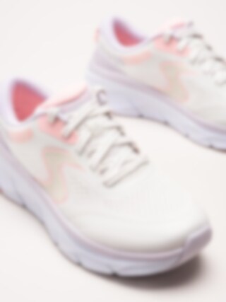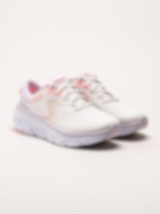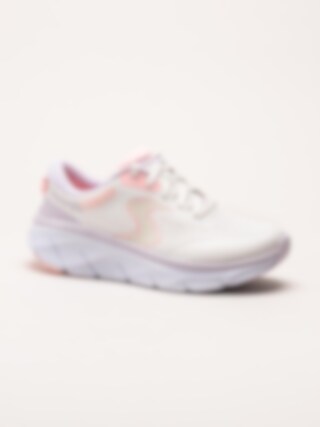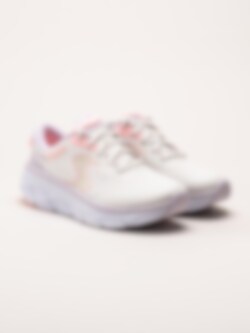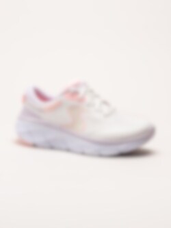 Beiga sneakers DLux Walker 2.0 - Active Pace Off White Pink i textilmesh från Skechers. Air cooled memory foam i innersulan ger en mjuk fotbädd som formar sig efter foten och som andas på ett bra sätt. Skorna är helt veganska och tvättbara i 30 grader. En bekväm sneaker som funkar utmärkt för långa promenader men även löpning ifall man så önskar.