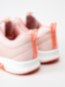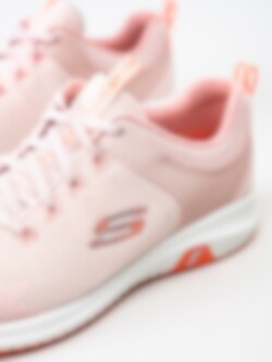 Rosa sportskor Ultra Flex Prime tillverkade i textil från Skechers med orange detaljer. Goodyear yttersula ger förbättrad grepp, stabilitet och hållbarhet.