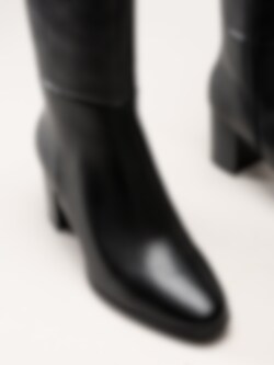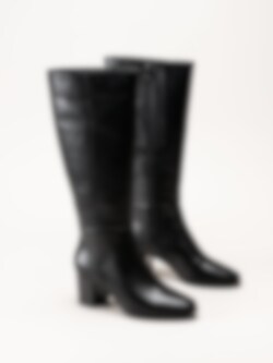 Caprice - Svarta skinnstövlar med blockklack