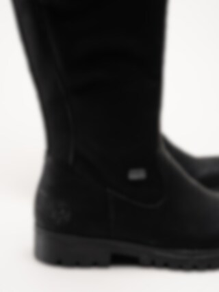 Svarta fodrade stövlar Black från Rieker. Klassiska och bekväma stövlar tillverkade i slitstark syntet med ett mjukt ullfoder som håller fötterna varma under kalla vinterdagar. Den filtklädda innersulan bidrar med extra komfort, medan yttersulan i gummi ger bra grepp och stabilitet på olika underlag. Utrustade med RiekerTEX som gör stövlarna vattenavvisande samtidigt som de andas, samt Antistress-teknologi för en flexibel och lätt känsla i steget. Dragkedjan på insidan gör dem enkla att ta på och av.