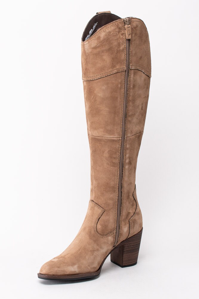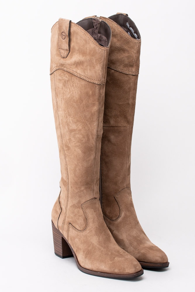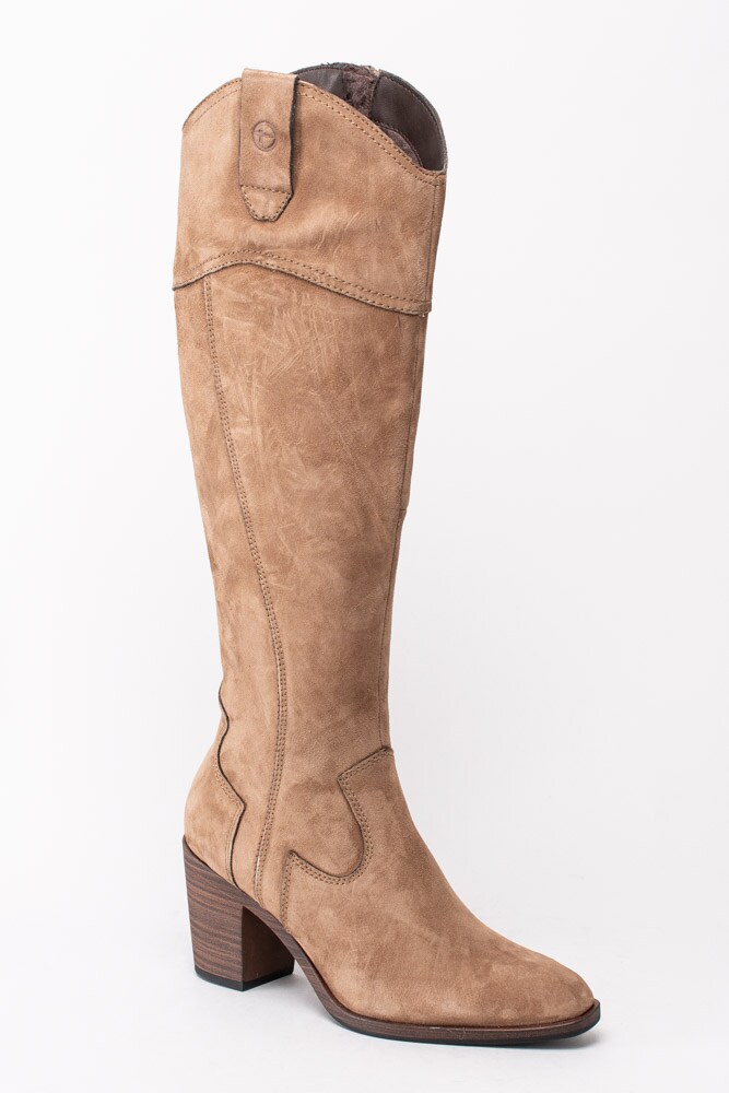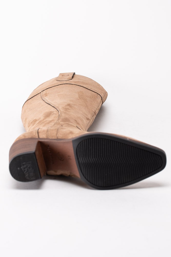 Tamaris - Beige westerninspirerade stövlar i mocka