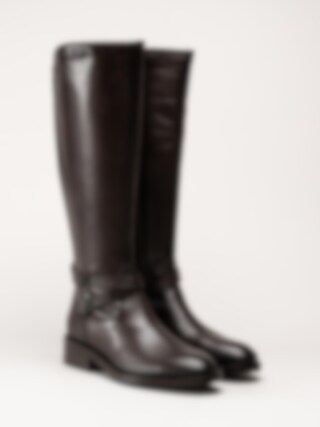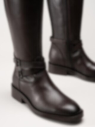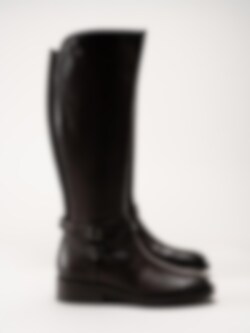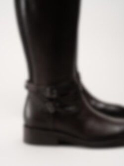 Mörkbruna stövlar i skinn med stretch från Tamaris. Snygga höga stövlar med spänne på sidan och gott om stretch för att ge en rymlig passform. Dragkedja på insidan. Skönt mjukt foder i fleece även i innersulan som också har Touch-It för hög komfort. ANTI-slide på klacken för extra säkerhet när du är ute och går.