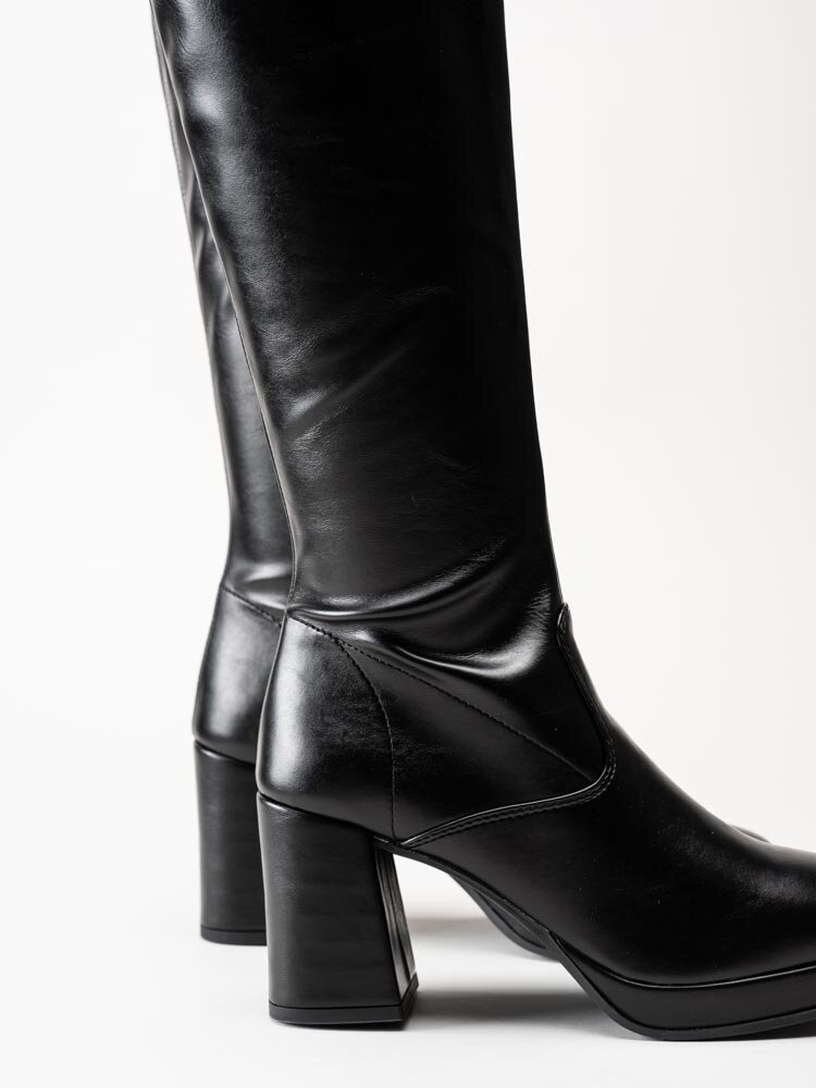 Svarta overknee stövlar med robust klack och platå från Tamaris. Tillverkade i syntet med elastiskt skaft för skön passform.
