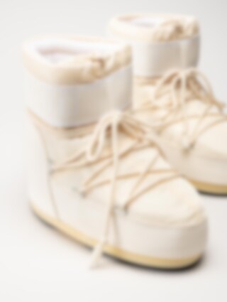 Klassiska Icon Low 2 från Moon Boot i färgen Cream. Lätt att hoppa i och ur och skosnörena gör att du kan justera passformen lite. Nylon på bladet och syntet runt om som stabiliserar bootsen med den klassiska loggan. Tack vare den låga skärningen är Icon Nylon low nylon utmärkta vinterboots som erbjuder både skön komfort och trendg stil, perfekta som ett par after ski boots!