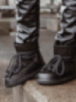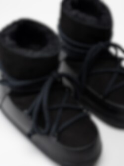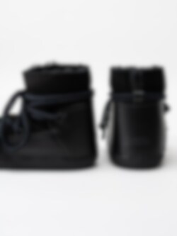 Svarta fårskinnsfodrade vinterstövlar i mocka från Inuikii. En klassiker som håller dig varm med hög modegrad. Trendig vinterstövel med vacker snörning som gör att du kan hålla stilen även vid kallare temperaturer. Varm fodring med fårskinn och en ordentlig sula i gummi.