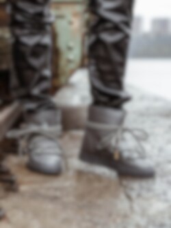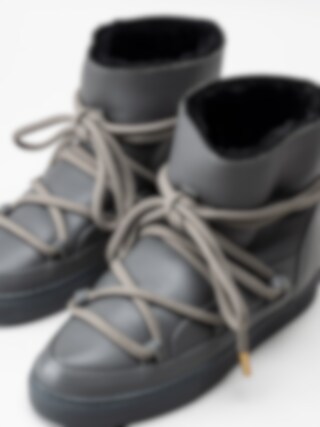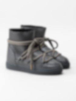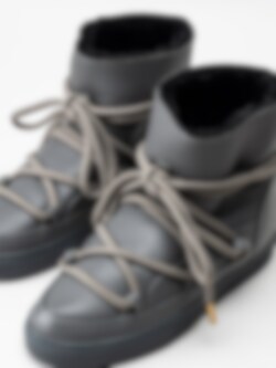 Grå fårskinnsfodrade vinterstövlar i skinn från Inuikii. En klassiker som håller dig varm med hög modegrad. Trendig vinterstövel med vacker snörning som gör att du kan hålla stilen även vid kallare temperaturer. Varm fodring med fårskinn och en ordentlig sula i gummi.