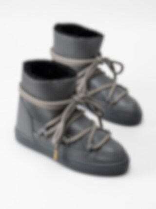 Inuikii - Sneaker Full Leather - Grå fårskinnsfodrade vinterstövlar i skinn