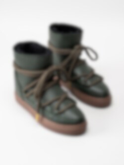 Inuikii - Sneaker Full Leather - Gröna fårskinnsfodrade vinterstövlar i skinn