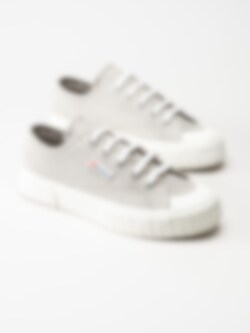Grå sneakers i textil från Superga. Snygga snörskor tillverkade i canvas med foder och innersula i textil. Vit chunky yttersula i syntet.