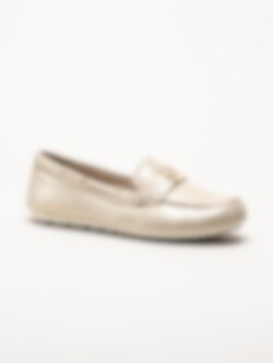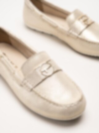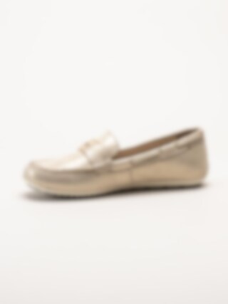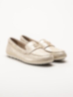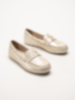 Tamaris - Guldiga loafers i mocka
