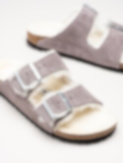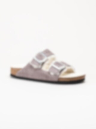 Birkenstock - Arizona Shearling - Ljuslila fårskinnsfodrade slip in sandaler