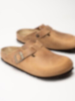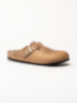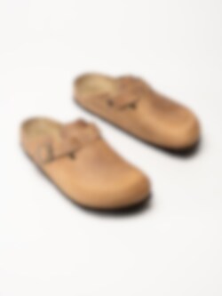 Birkenstock - Boston Narrow - Ljusbruna slip-in sandaler i oljat skinn