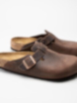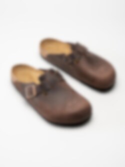 Birkenstock - Boston Regular - Mörkbruna slip-in sandaler i oljat skinn