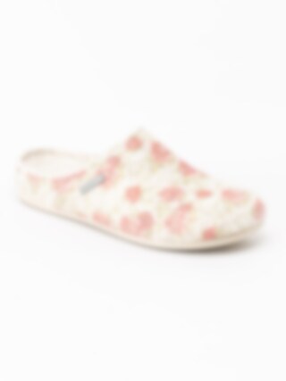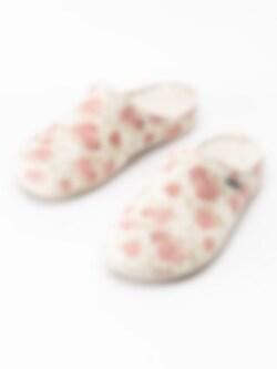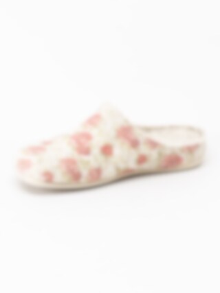 Grå slip in tofflor Cilla från Shepherd i ull med blom-mönster. Passar utmärkt att använda året runt då ull har en självreglerande temperatur, som värmer när det är kallt och känns luftig när det är varmt. Smyckeslogga i silver på utsidan. Foder och innersula i ull. Låg klack på ca 3 cm höjd. Beige yttersula i gummi med slät yta och logga.