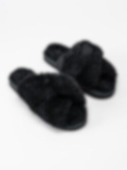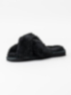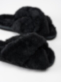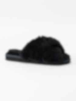 Svarta fårskinnsfodrade slip in tofflor Lovisa från Copenhagen Shoes. Unna dig ett par mysiga tofflor till vintern! Tillverkade i fårskinn dessa tofflor kommer att hålla dig varm under dem kallaste dagarna.