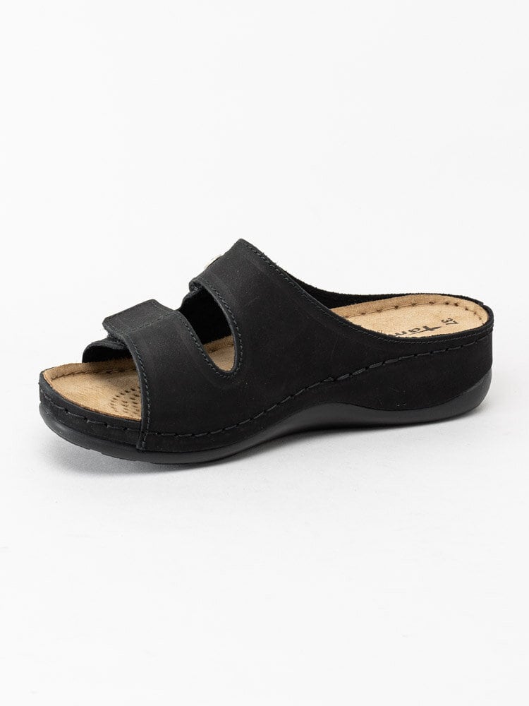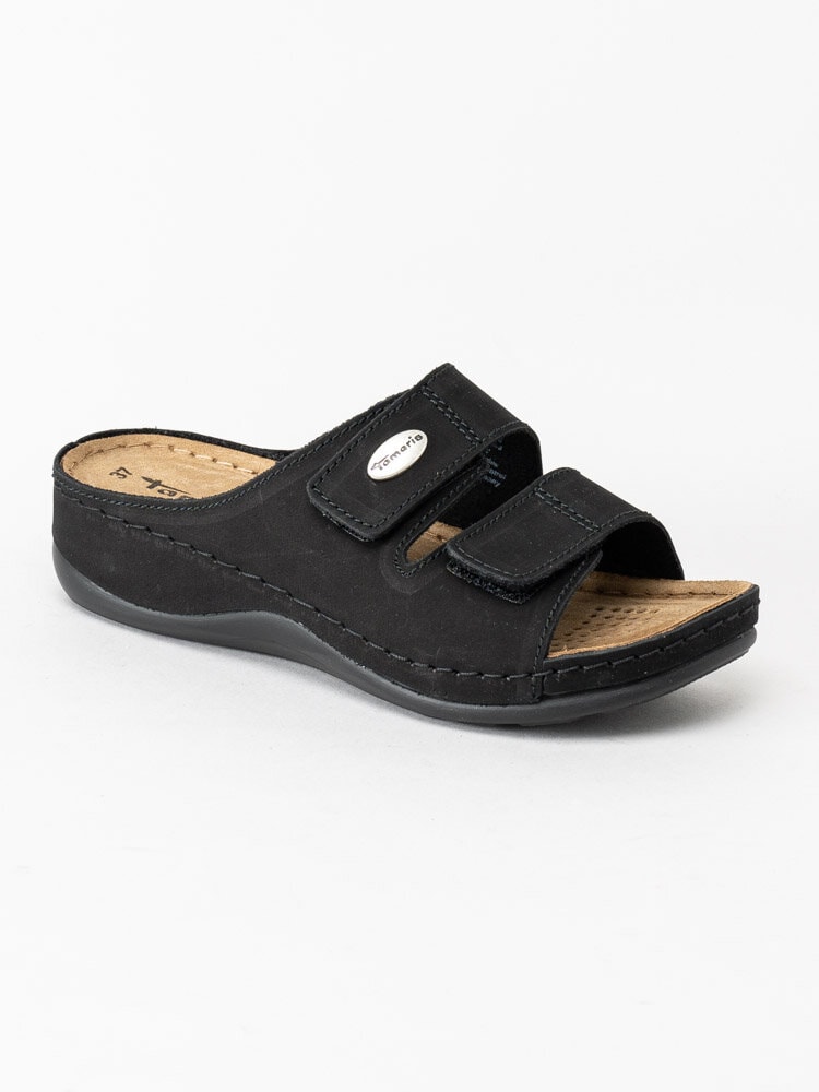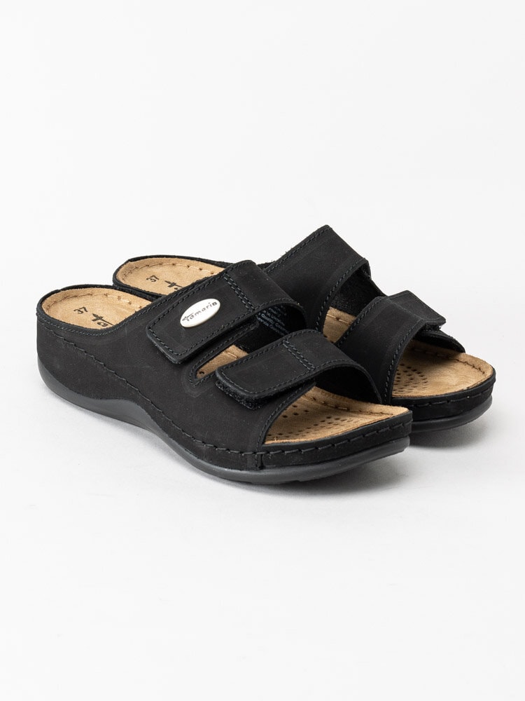 Svarta slip in tofflor från Tamaris i nubuck. Perfekt som innesko och komplement till hemmakontoret.