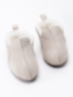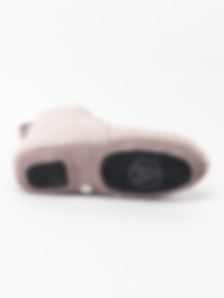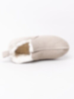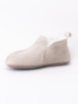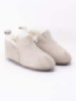 Ljusbeiga mysiga tofflor Innsbruck från Axelda tillverkade i mocka. Varmfodrade slip on tofflor med fårskinnsfoder för att hålla dig varm. Gosa ner i dessa tofflor i soffan i din favoritpyjamas och mys in den kalla säsongen! Sömmar och sydda kryss längs bakparti som detalj. Smyckeslogga och präglad logga på utsidan av bakparti. Hälla på bakskaft som hjälpmedel vid påtagning. Mjuk sula i mocka med gummerade trampdynor för att ge ett bra fäste.
