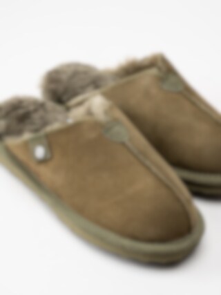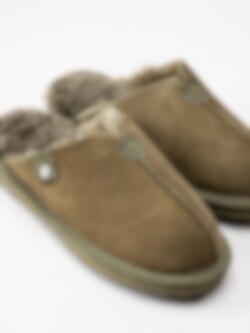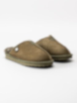 Axelda - Åbo - Olivgröna fårskinnstofflor i mocka