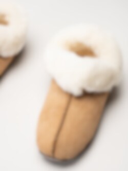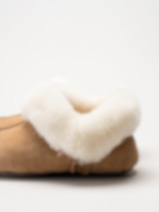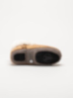 Ljusbruna fodrade tofflor i mocka Hemsedal Chestnut White från Axelda. Klassiska och varma fårskinnstofflor tillverkade i mjuk mocka med naturligt fårskinnsfoder som ger överlägsen värme och komfort under kalla dagar. Den mjuka innersulan i fårskinn formar sig efter foten och skapar en skön, omslutande känsla, medan den vadderade fotbädden med mjuk foam ger extra dämpning och komfort vid varje steg. Den låga ankelmodellen gör tofflorna enkla att ta på och av - perfekt för både morgnar och kvällar hemma. Yttersulan i mocka och gummi har en halkskyddande antislip-yta som ger bra grepp på hala golv, samtidigt som den är flexibel och bekväm för inomhusbruk.