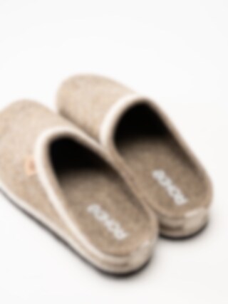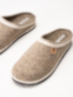 Ljusbruna slip in tofflor i ullfilt D.Meran Leinen från Rohde. Klassiska och bekväma tofflor i filt och ullblandning som håller fötterna varma och sköna under kyligare dagar. Insidan är fodrad med samma mjuka material för extra komfort, och den löstagbara innersulan i filt gör tofflorna praktiska och enkla att fräscha upp eller byta vid behov.