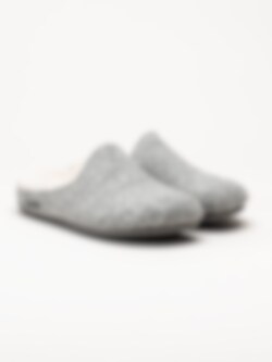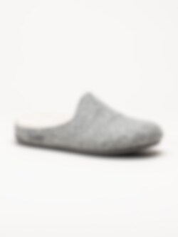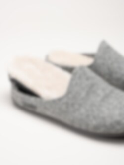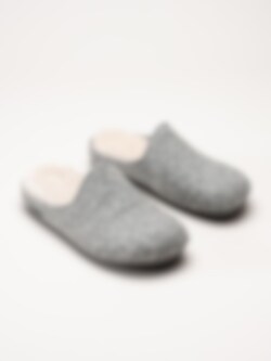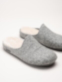 Grå slip in-tofflor Fatima Grey från Shepherd. En klassisk och bekväm modell tillverkad i mjuk ullblandning med foder i samma värmande material. Den löstagbara innersulan i fårskinn ger extra komfort och isolering, samtidigt som materialets naturliga egenskaper hjälper till att reglera temperatur, svalt när det är varmt och varmt när det är kallt.