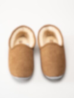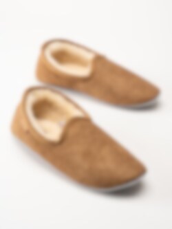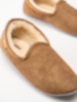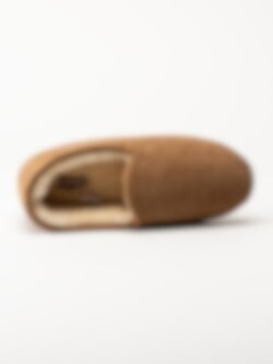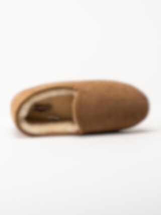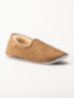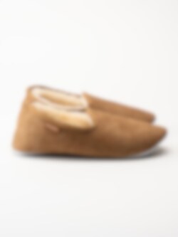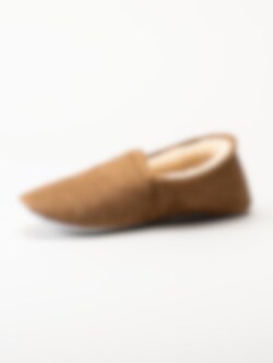 Ljusbruna slip on fårskinnstofflor från Shepherd. Tillverkade i mocka med foder och innersula i fårskinn. Yttersula i mocka. Något små i storlekarna, vi rekomenderar att gå upp i storlek.