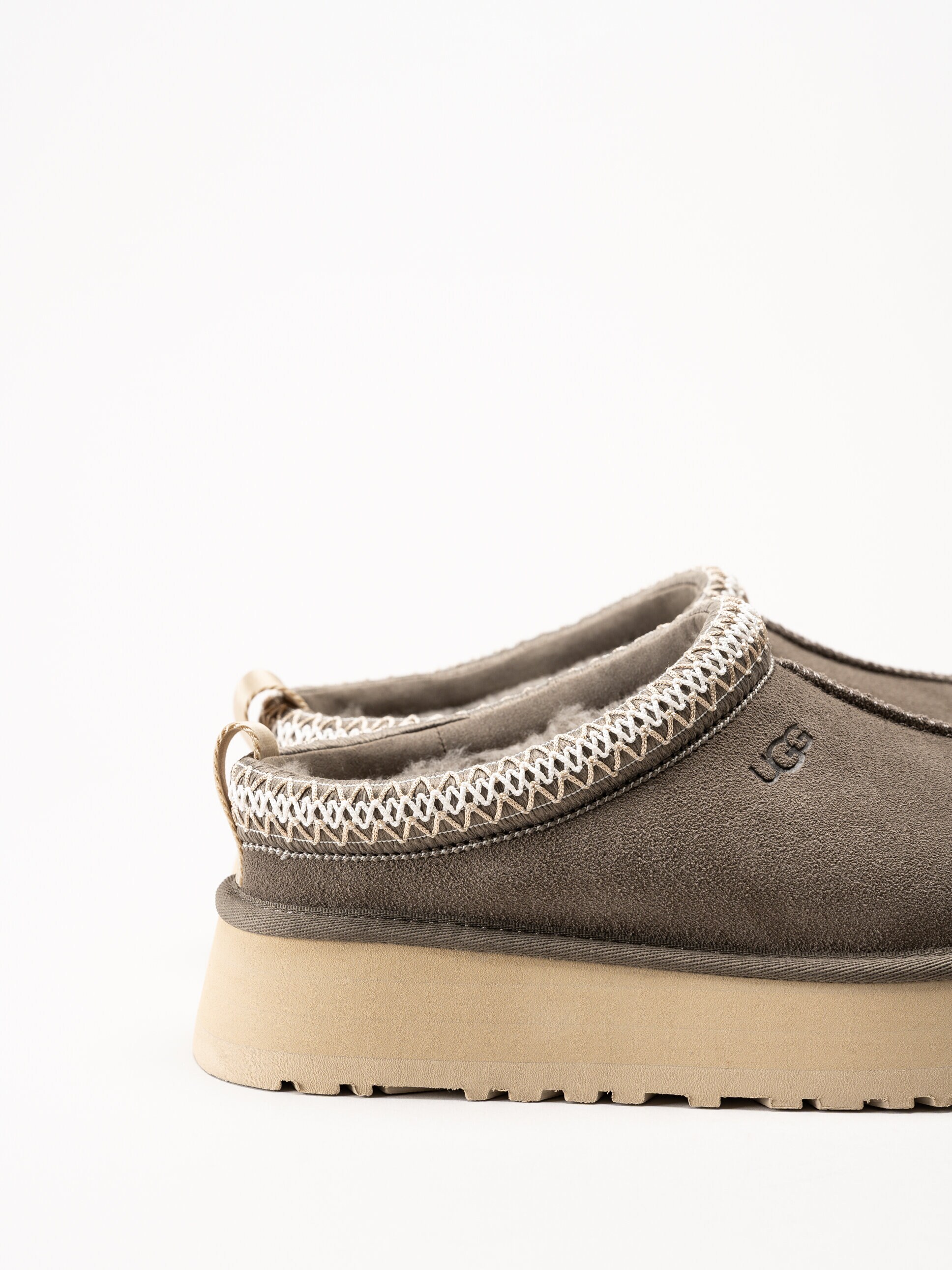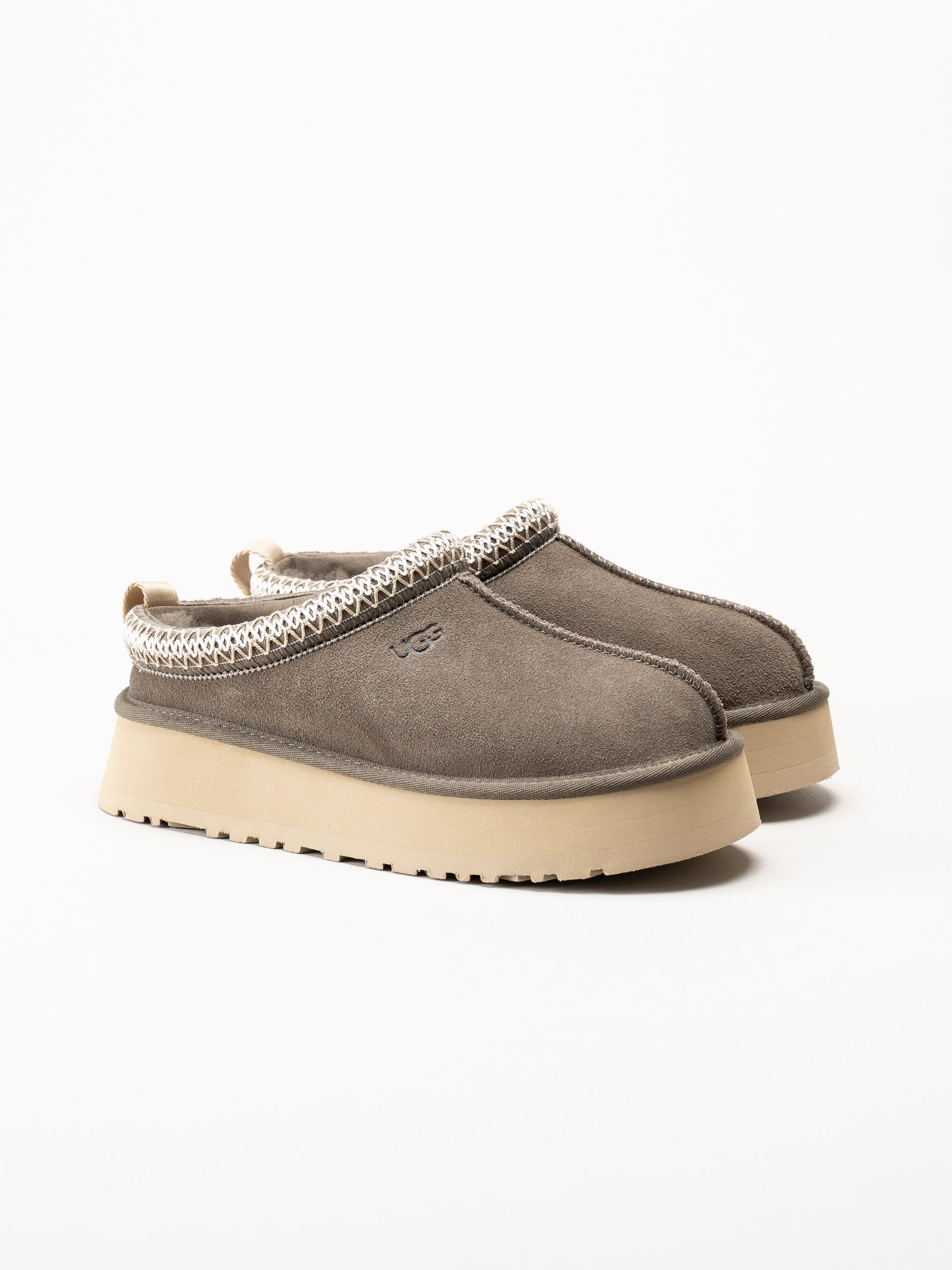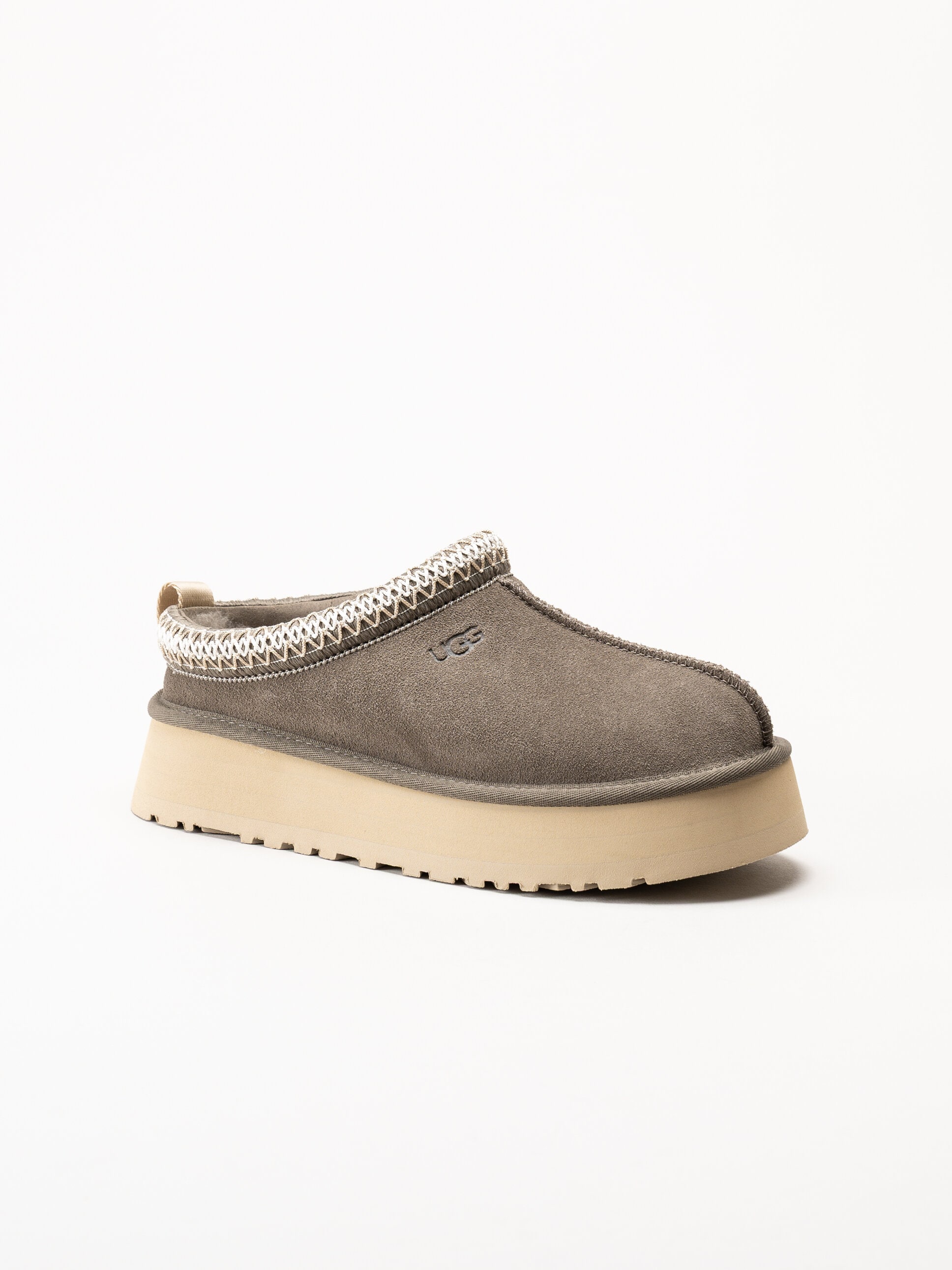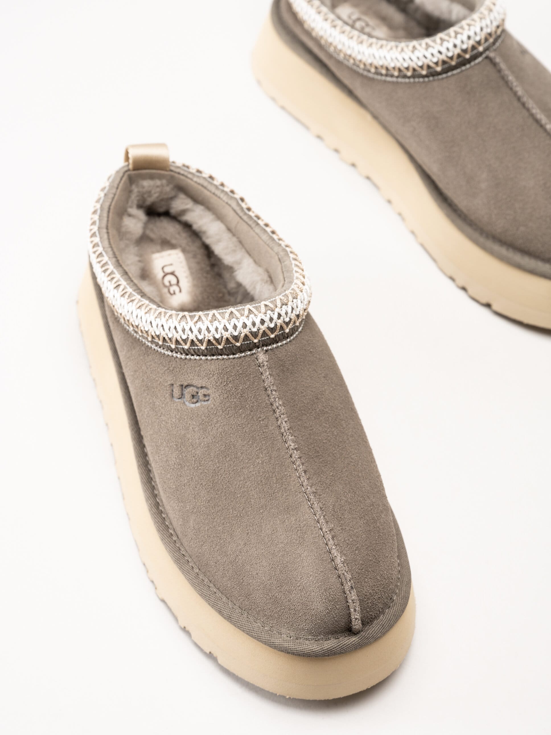 • UGG - W Tazz II - Ljusbruna fårskinnsfodrade tofflor i mocka