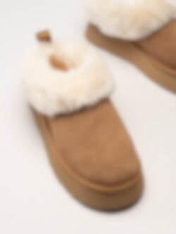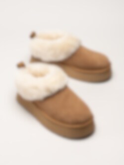 Yttersulan i syntet med lätt dämpning gör toffeln stabil och följsam, medan den fasta fårskinnsresåkragen runt kanten ger en ombonad känsla. UGG Tazzelle kombinerar stil, komfort och funktion - perfekt för kalla dagar hemma eller på mysiga promenader utomhus.