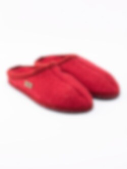Röda slip-in tofflor Original från Ulle är en röd klassisk ulltoffla i en slip-in modell. Eftersom tofflan är tillverkad i ull har den en självreglerande temperatur, värmer när det är kallt och känns luftig när det är varmt. Toffeln är tvättbar i tvättmaskin 30 grader. Textilrand längs öppning. Smyckeslogga i brons på utsidan. Rött foder och innersula i ull. Mörkgrå yttersula i tvinnad ull.