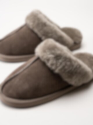 Wollies - Slip On - Mörkgrå fårskinnsfodrade slip in tofflor