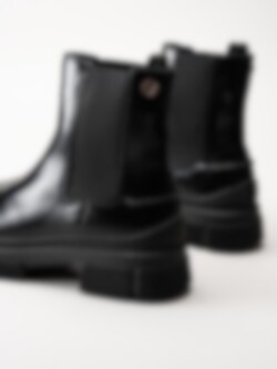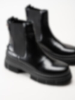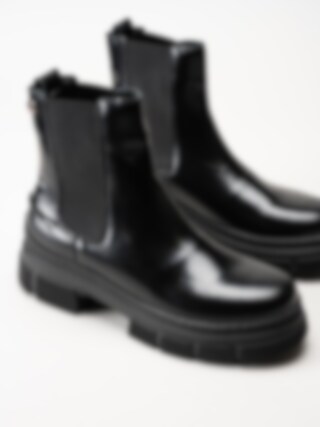 Svarta chelsea boots Preppy Outdoor Low Boot i skinn från Tommy Hilfiger. Trendiga resårboots i polidoskinn och små fina detaljer. Tunt textilfoder och vadderad innersula i skinn. Resår på båda sidorna och deagsko på skaftkant för hjälp vid påtagning. Grövre chunky sula som ger ett coolt uttryck och med ett bra mönster för ett bättre grepp mot underlaget. Snygg boots både till den kortare byxan eller en kjol!