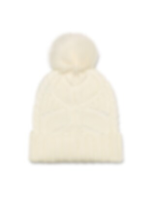 UGG - W Cable Beanie With Pom - Vit stickad mössa med tofs