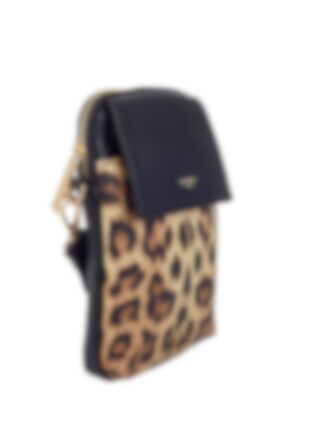 Ulrika Design - Multi Pockets - Svart större mobilväska med leopardmönster