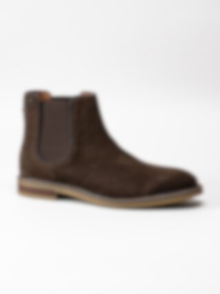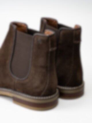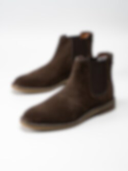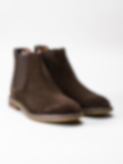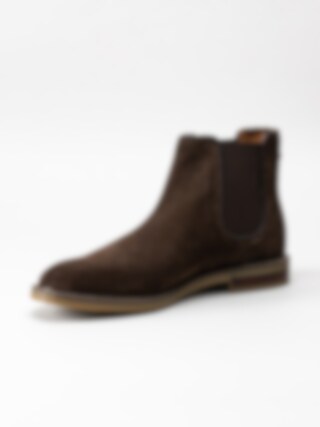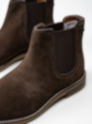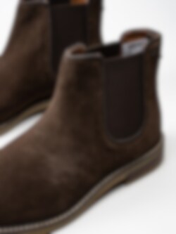 Mörkbruna chelsea boots Jaxen Chelsea i mocka från Clarks.