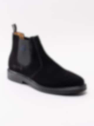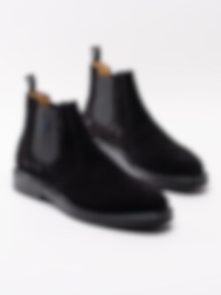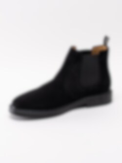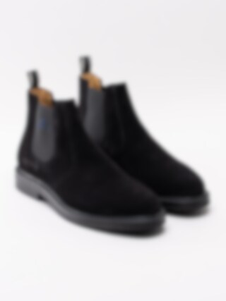 Svarta chelsea boots Fargo från Gant. Tillverkade i mocka med sömmar i detalj. Resår på in- och utsidan med broderad logga på utsidan. Dra-på modell för dig som inte vill ha snörning. Hälla i textil på bakskaft som hjälpmedel vid påtagning. Skinnfodrad för dig som inte önskar extra värme men som värdesätter den komfort bara ett skinnfoder kan ge. Markerad sula i gummi med klack.