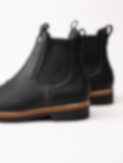 Svarta fårskinnsfodrade kängor Burton Igloo C1 med resår från Panama Jack. Denna snygga modell från vårt nya märke Panama Jack kommer hålla dig varm om fötterna med sitt fårskinn både i sulan och hela kängan. Skinnet är behandlat så det är vattentätt för höstens och vinterns regn och snöblask. Snygg dekorativ brun sydd kant runt hela kängan ger den extra karaktär. Ett måste när vintern slår till med sin kyla.