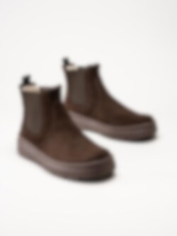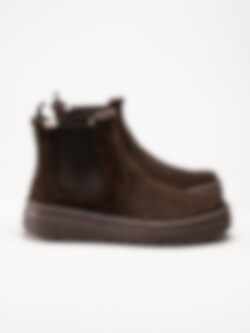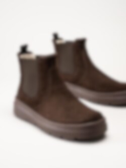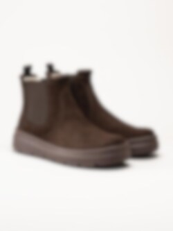 Mörkbruna ullfodrade chelsea boots M Burleigh Chelsea Dark brown i mocka från Ugg. Sköna boots i mocka med värmande ull i fodret och innersulan. Ull transporterar ut fukt och håller dig torr och varm under kalla dagar. Lättviktssula som är skönt dämpande och isolerar bra från det kalla underlaget. Denna modell är vattenresistent men går man i mycket regn och slask så bör man fylla på med impregnering minst varannan vecka.
