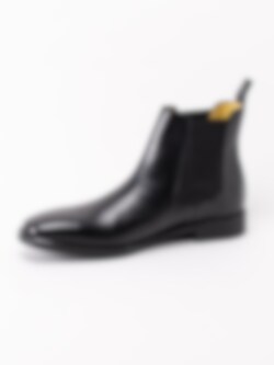 Svarta chelsea boots Mayfair från Steptronic tillverkade i skinn. Resår på in- och utsidan för lätt på- och avtagning. Hälla på bakskaft som hjälpmedel vid påtagning. Beigt foder och mjuk innersula i skinn med präglad logga. Svart yttersula i syntet med mönster och logga.