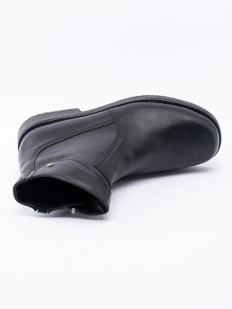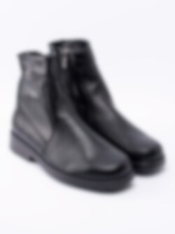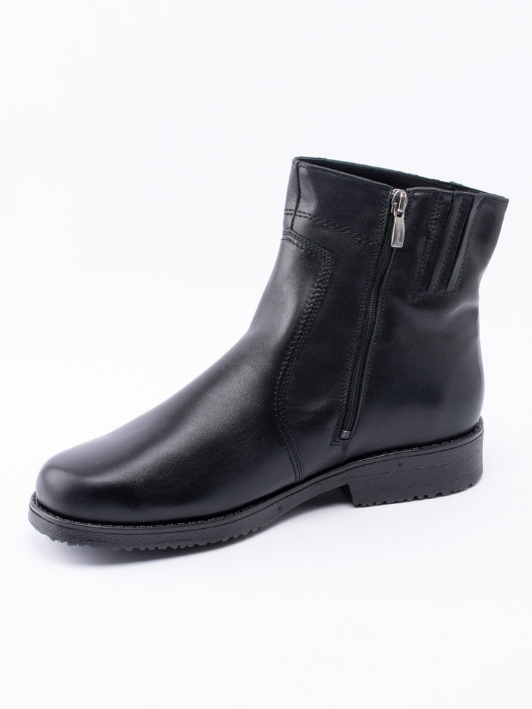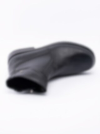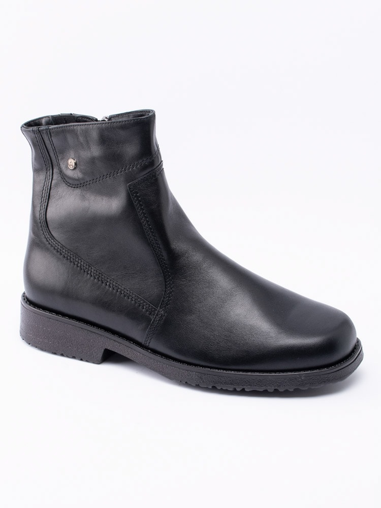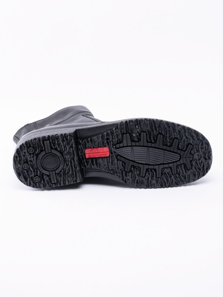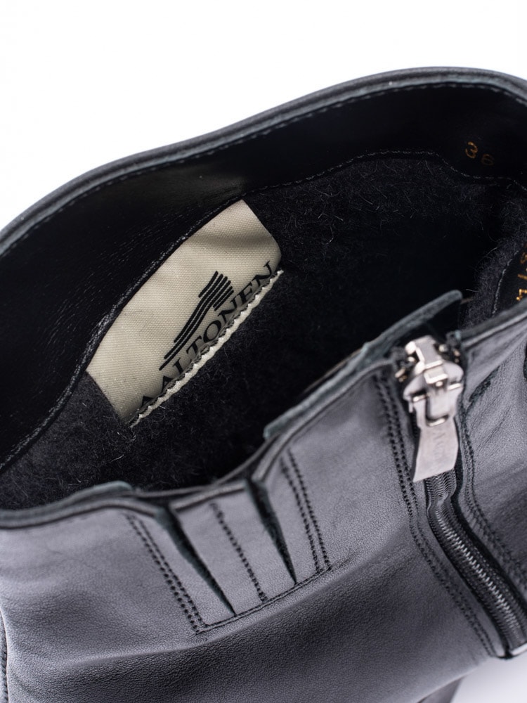 Svarta boots från Aaltonen i skinn med ullfoder, passar att användas under kalla temperaturer. Utrustad med Grip+ som gör att gummisulan reducerar halka på snö och is. Dragkedja på insidan som öppning. Dekorativ smyckeslogga på utsidan av skaft. Svart foder och löstagbar innersula i ull för att hålla dig varm. Svart yttersula i gummi med mönster och röd logga.